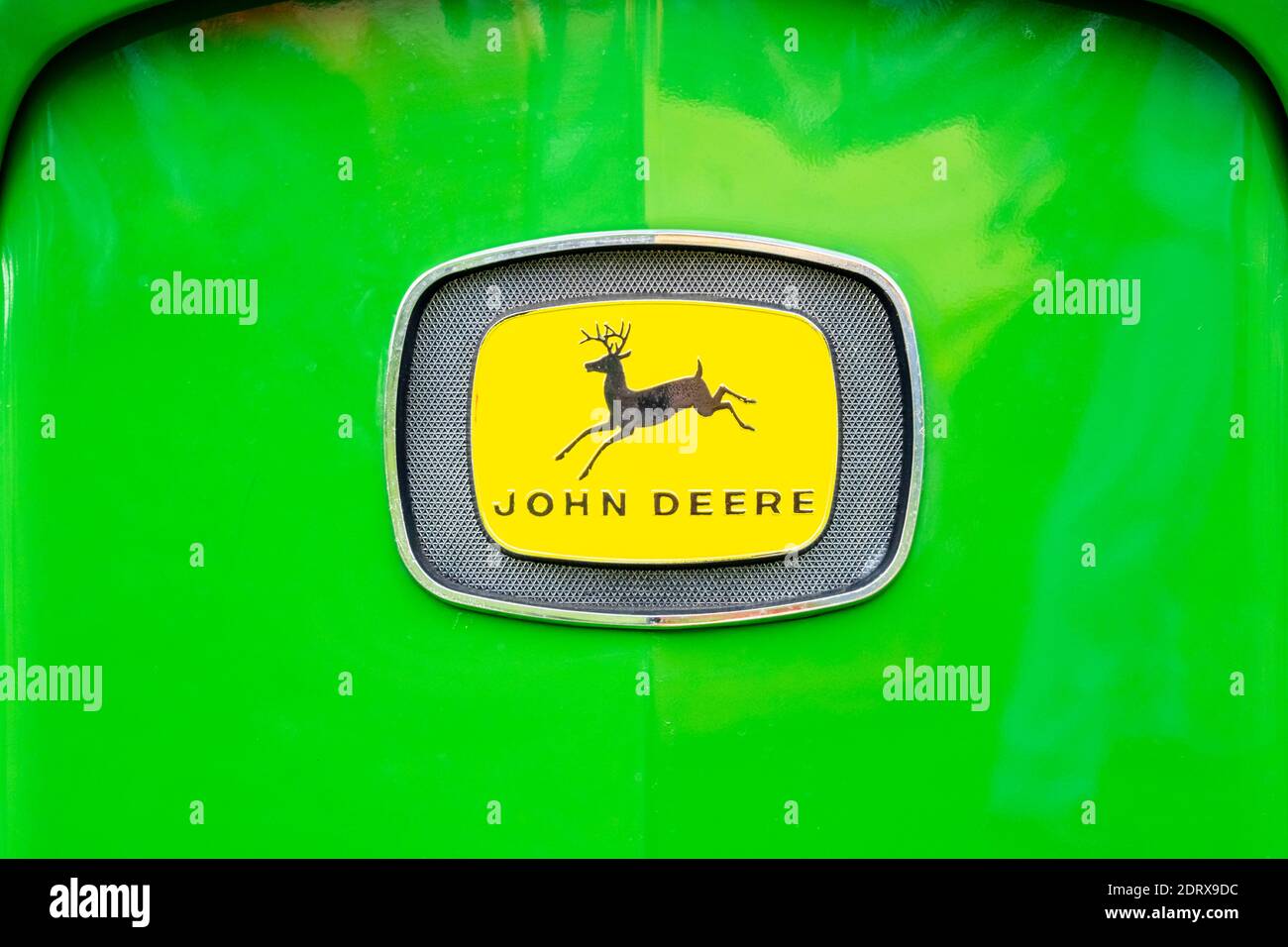 John Deere Badge On Tractor Grill Stock Photo Alamy